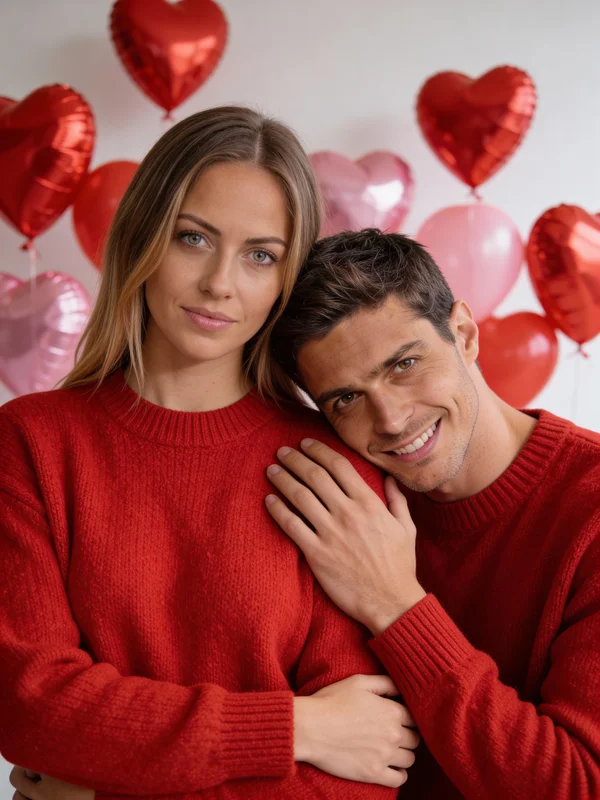 Valentine's Day colour language in photography is precise: deep reds, soft roses, and warm neutrals that read as love-coded without requiring explicit Valentine's props. The generator builds these tones into the light temperature and background environment rather than adding them as a filter overlay, producing a more naturalistic result than seasonal photo editing apps. The close-framing compositional approach — subjects occupying the centre of the 3:4 frame in intimate proximity — is the composition that consistently outperforms in Valentine's couple content engagement metrics, and the generator applies this compositional logic by default.