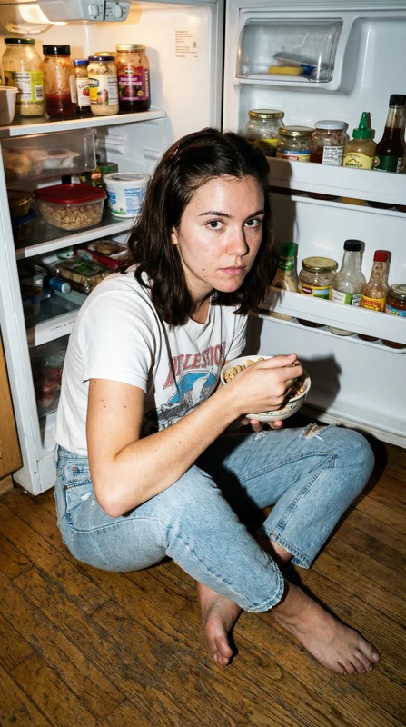 The midnight fridge raid is a universally shared human experience that generates instant recognition and emotional connection — and this generator lets you produce the scene with cinematic lighting quality that makes it feel crafted rather than candid, maximising both relatability and visual appeal.
