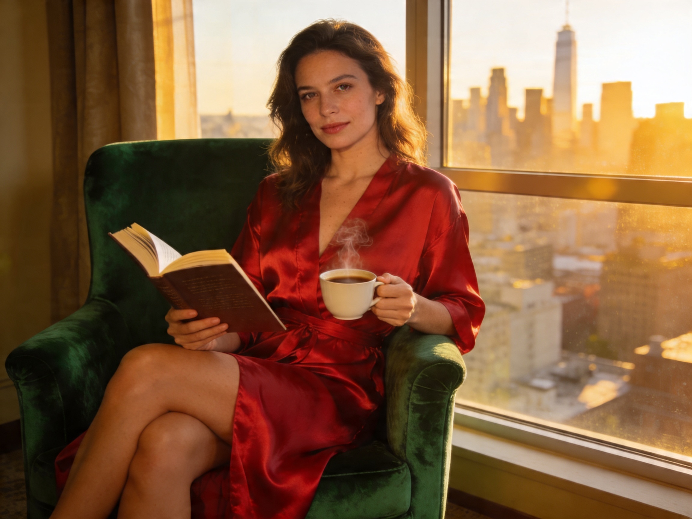 Verdict: 5.0 is the most disciplined about following the full prompt — correct hand positioning, both objects in the specified hands, skyline visible in the window. 4.5 usually hits 4 of 5 elements cleanly but may drop the book or misplace it. 4.0 tends to simplify — sometimes only one object, sometimes hands positioned ambiguously. For prompts with 4+ specific elements, 5.0 is the safer pick even if the photoreal polish is slightly lower than 4.5.
