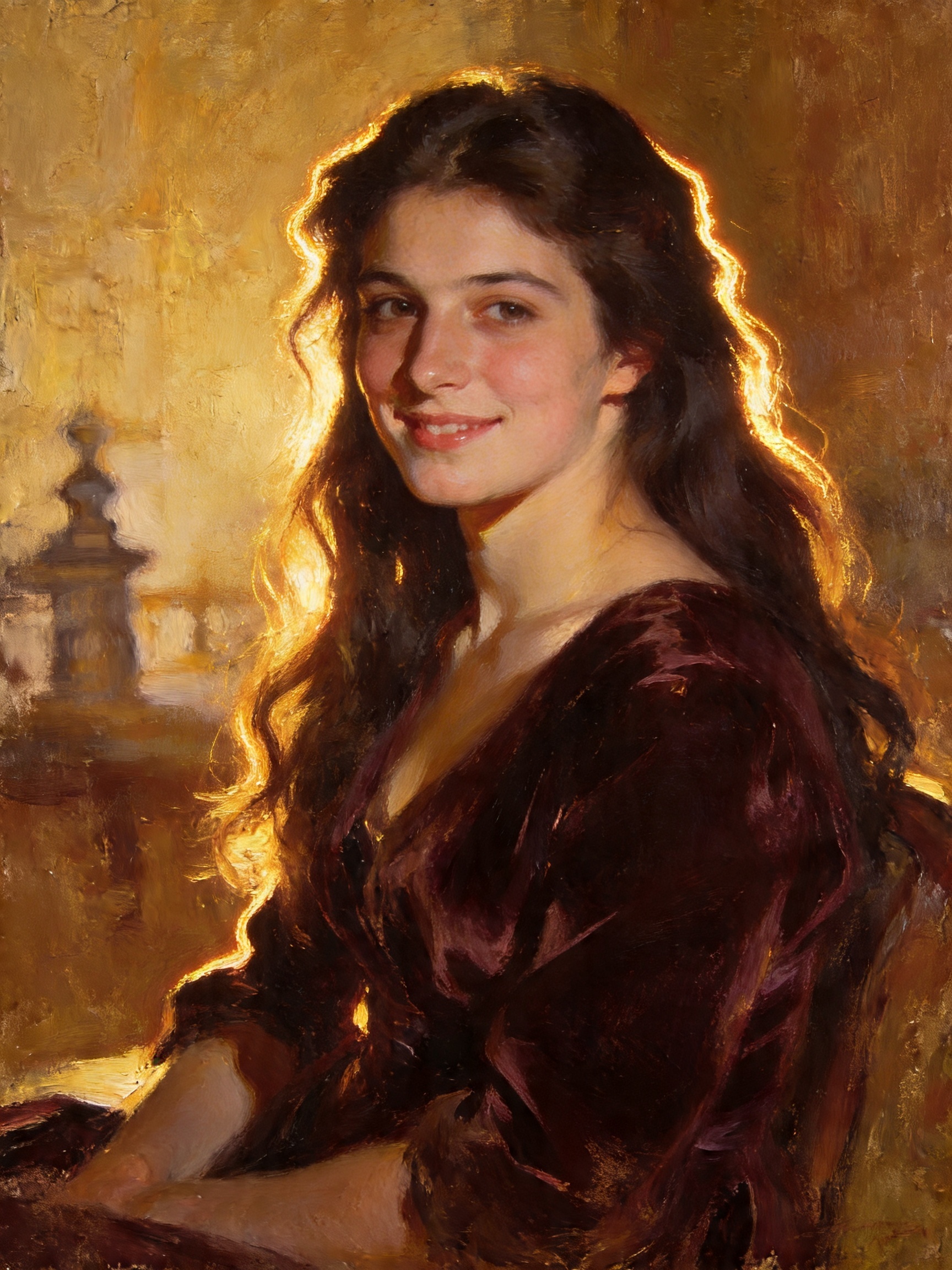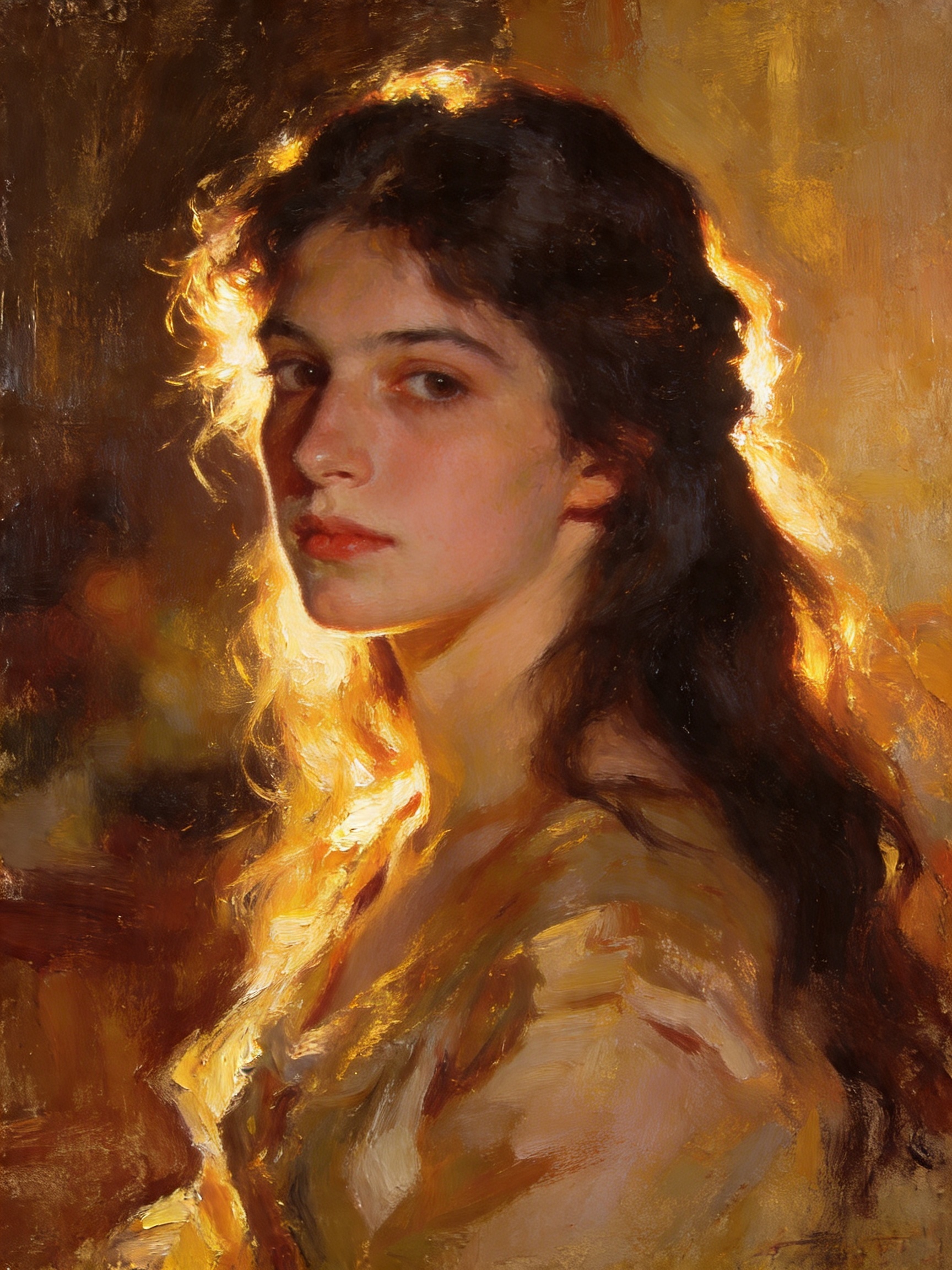 inspired by John Singer Sargent, dramatic rim light, no text no watermarks