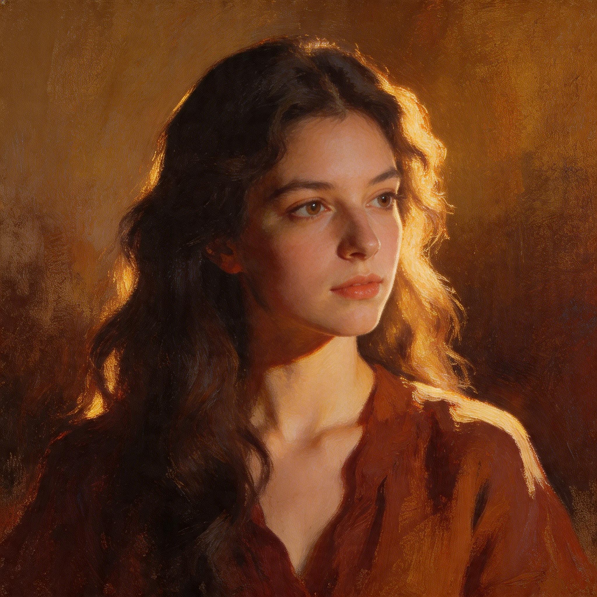 thick brushstrokes, rich warm palette, 19th-century portrait aesthetic