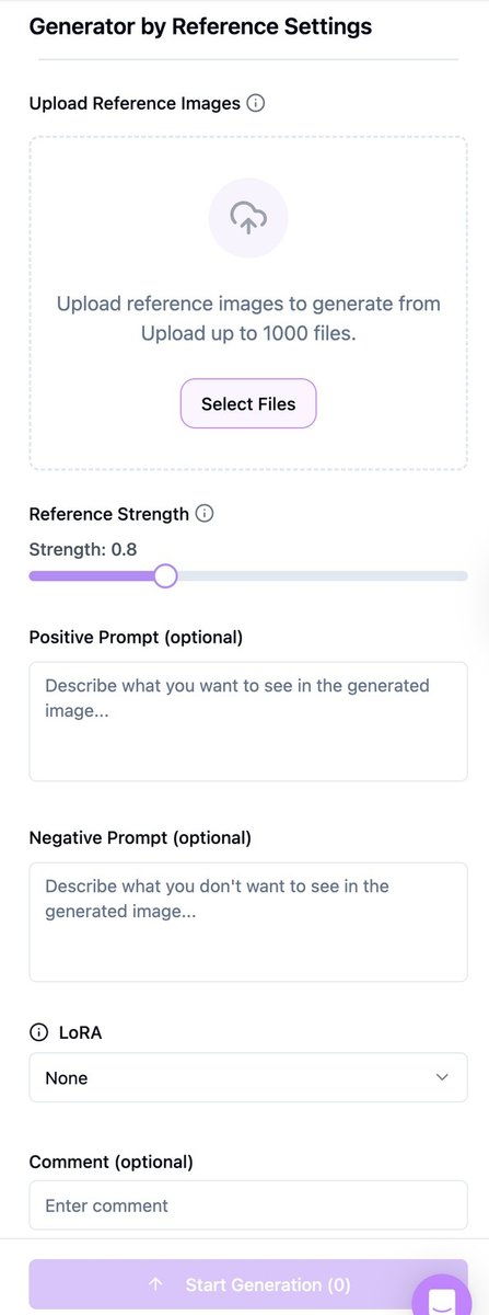 - Reference Strength Controls how closely results follow the reference. Start around 0.8; lower for freer variations, higher for closer matches.