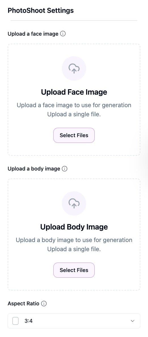 Spin up a full lifestyle shoot—Upload a face, optionally add a body reference, pick categories and sizes, and get a photo set ready to post.