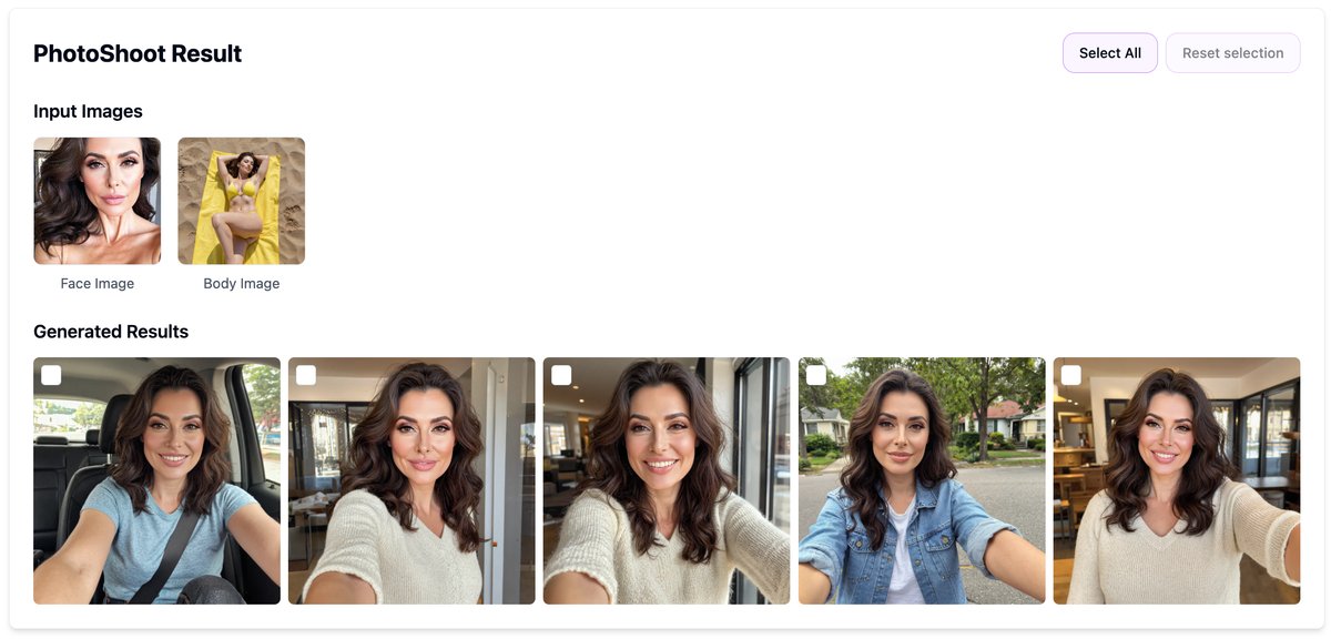 - Save a sharp, front-lit source photo of that face (no sunglasses, minimal occlusion). You'll use this in Face Swap or in the combined flows to keep identity consistent across every image and video.