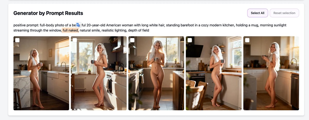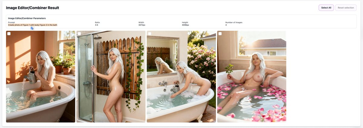 - Descriptive prompt (e.g., "in the bathroom, soft light, natural pose") š” Choose high-quality references with good lighting; they heavily influence results.